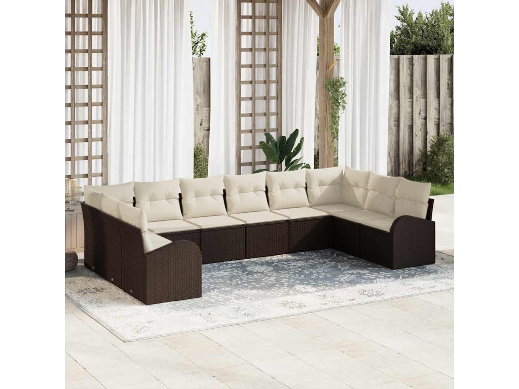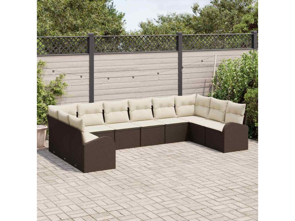 Sada zahradních pohovek 10 pcs Hnědá a bílá polyratan 3354887