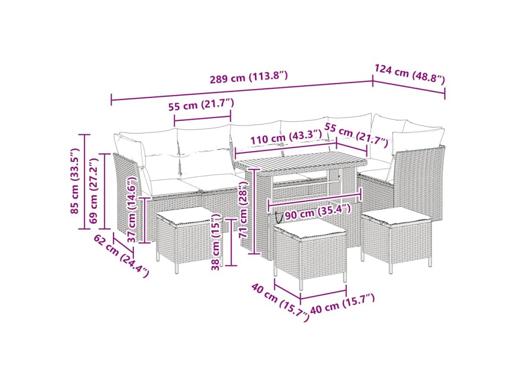Sada zahradních pohovek 10 pcs Šedá polyratan 3361513