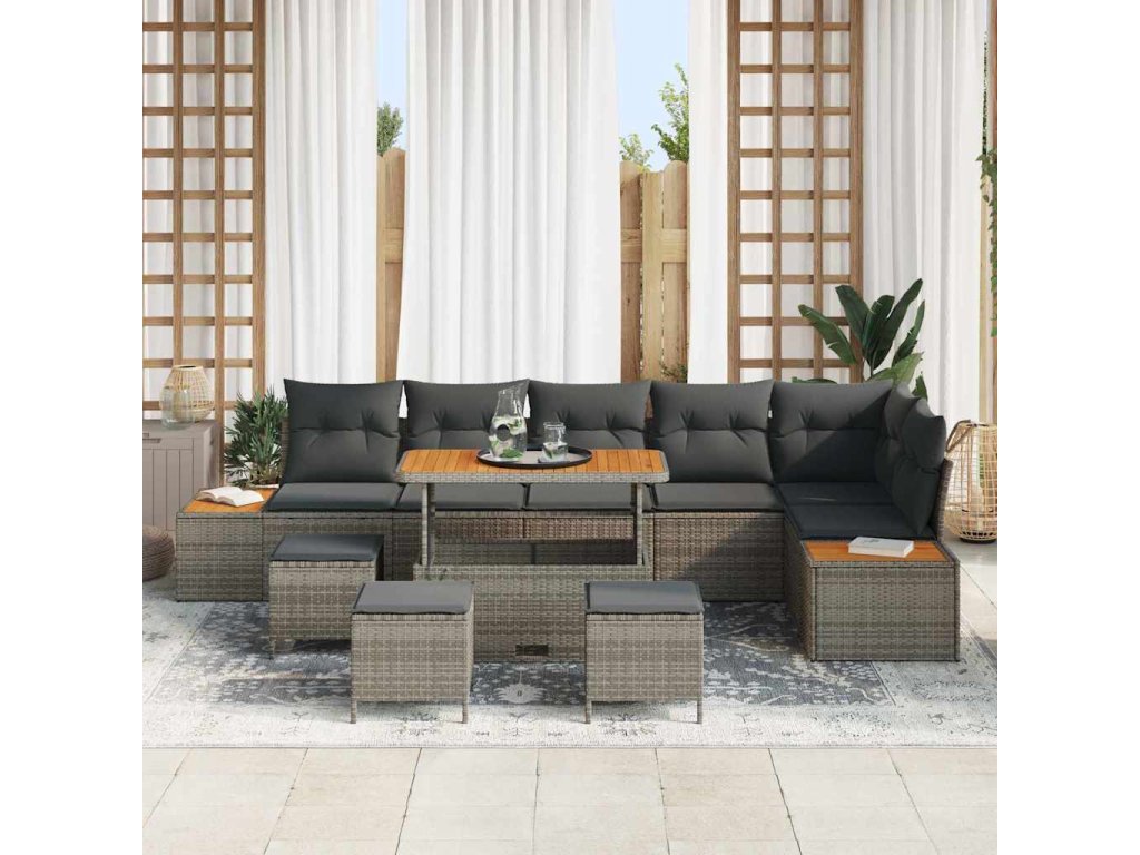 Sada zahradních pohovek 10 pcs Šedá polyratan 3362943