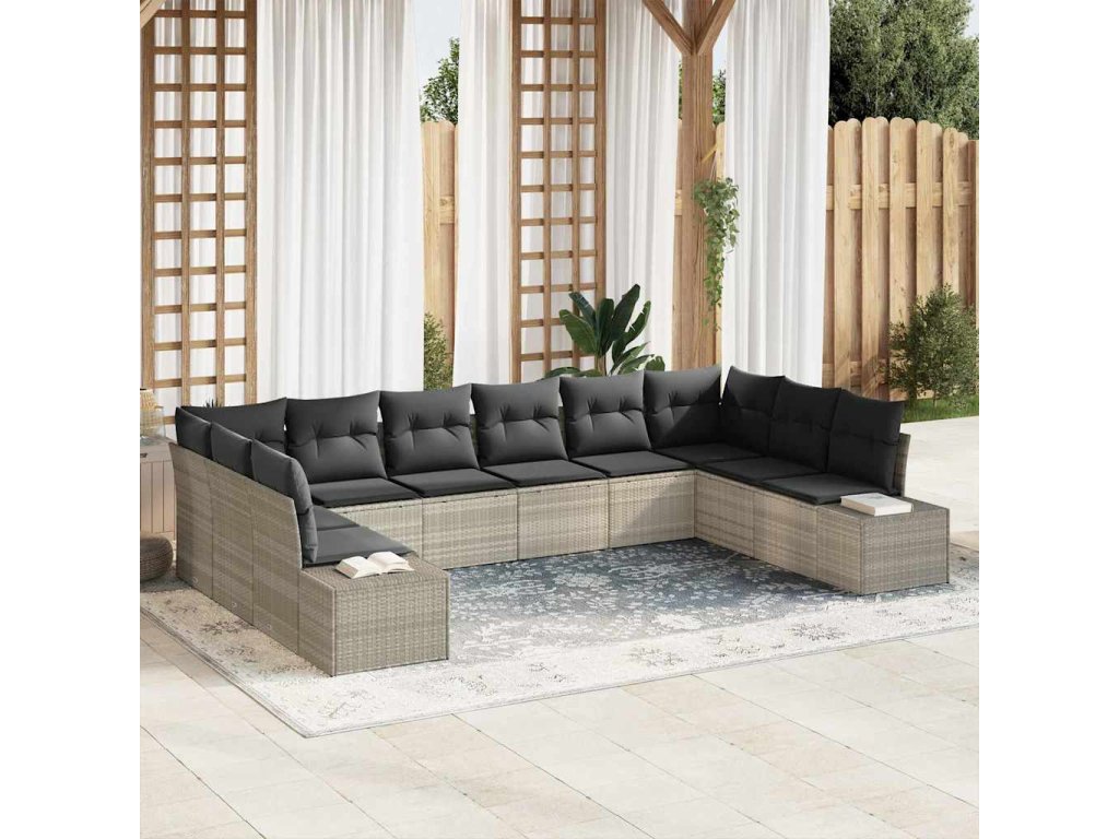 Sada zahradních pohovek 10 pcs Světle šedá Poly Ratan 3355911
