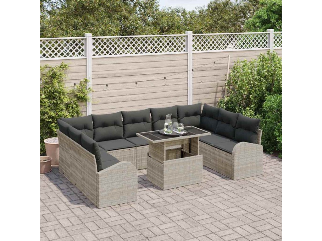 Sada zahradních pohovek 10 pcs Světle šedá Poly ratan 3357445