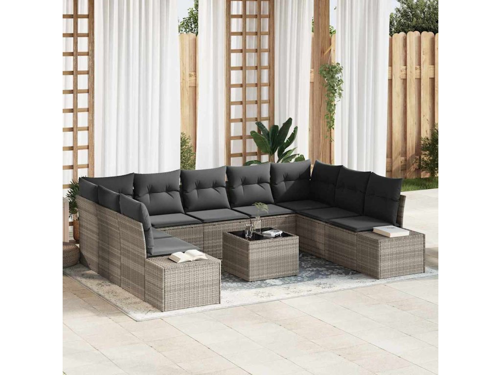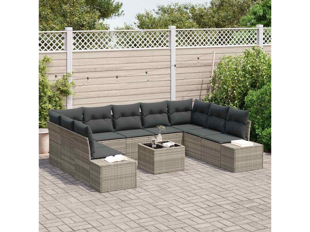 Sada zahradních pohovek 10 pcs Světle šedá polyratan 3347232
