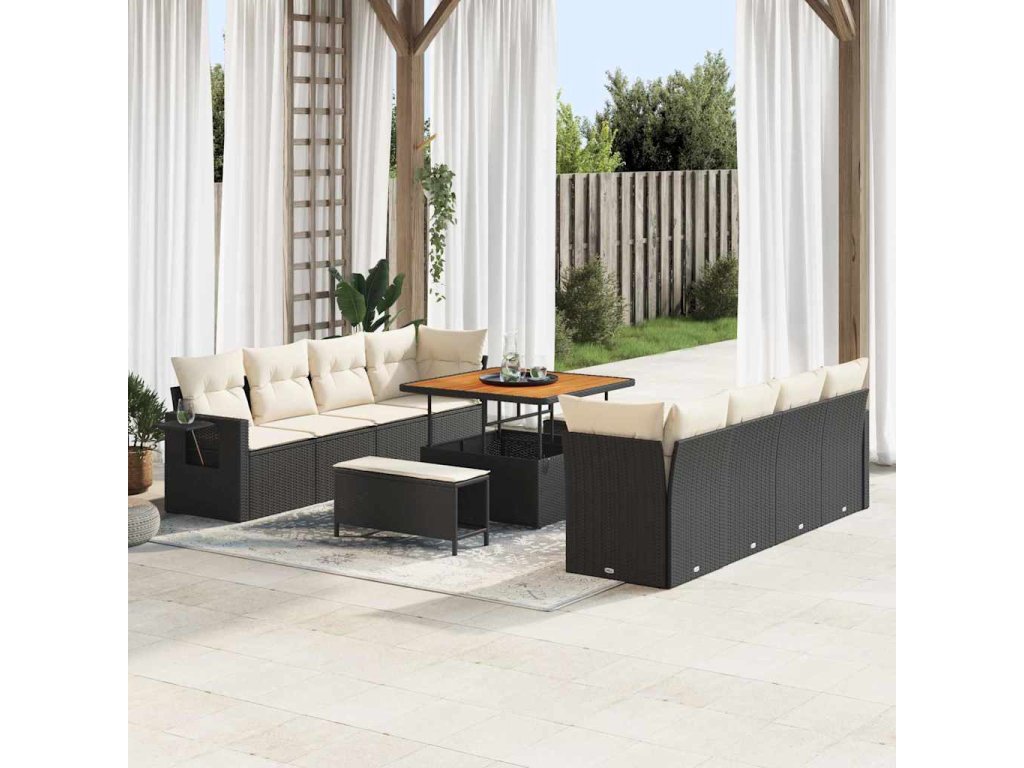 Sada zahradních pohovek 11 pcs Černá a krémová polyratan 3363675
