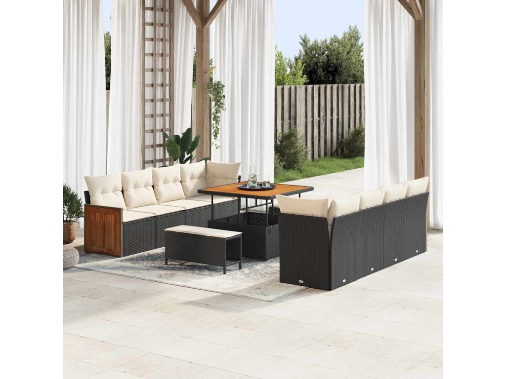 Sada zahradních pohovek 11 pcs Černá a krémová polyratan 3365235