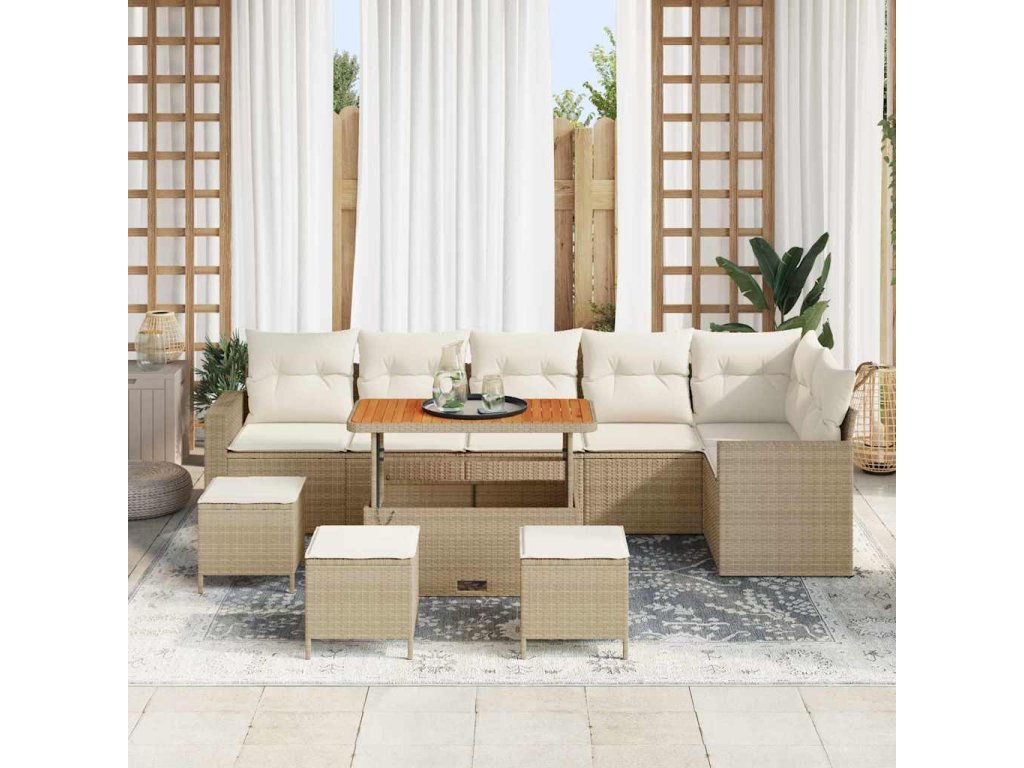 - Materiály z poly ratanu: Vyrobeno z pevného poly ratanu, tento zahradní set je navržen tak, aby odolal venkovním podmínkám, poskytuje sílu a odolnost vůči počasí a zároveň vypadá stylově. Materiál zajišťuje odolnost a klid na dlouhé období používání.