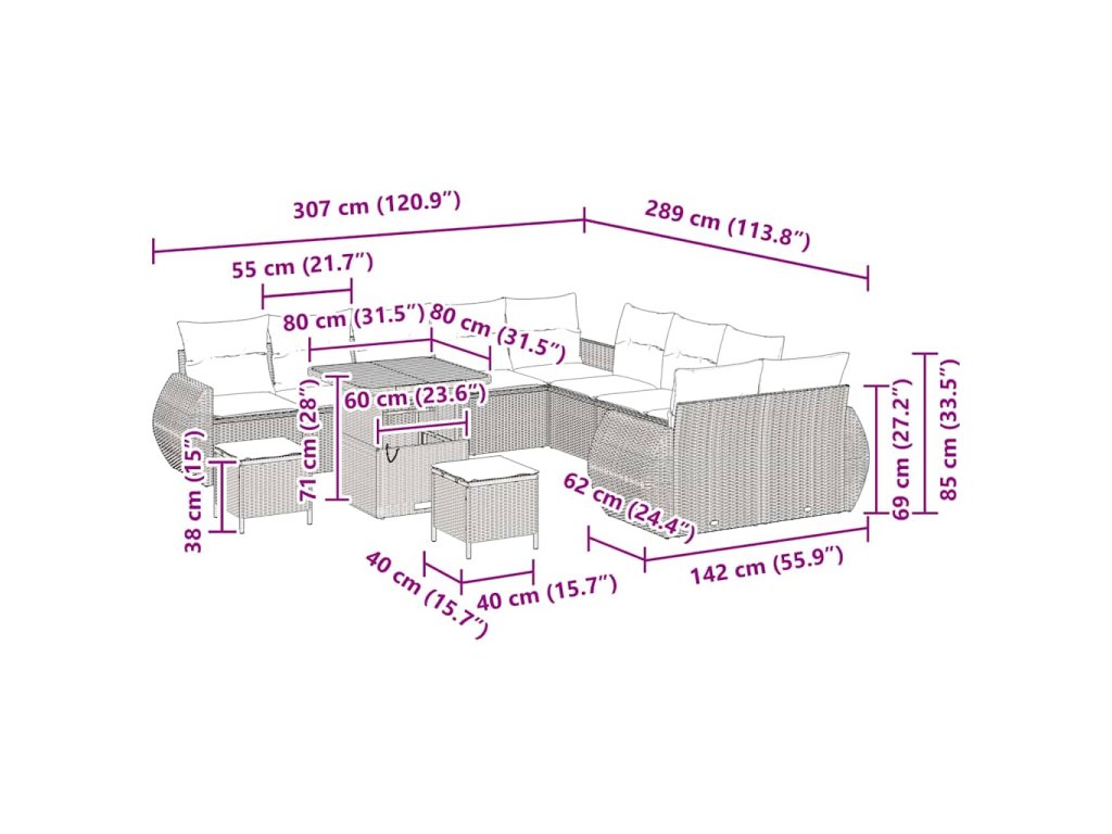 Sada zahradních pohovek 13 pcs Béžová polyratan 3361931