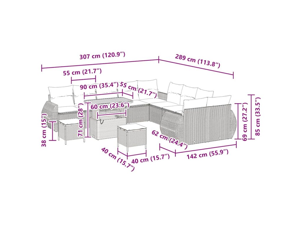 Sada zahradních pohovek 13 pcs Béžová polyratan 3361937
