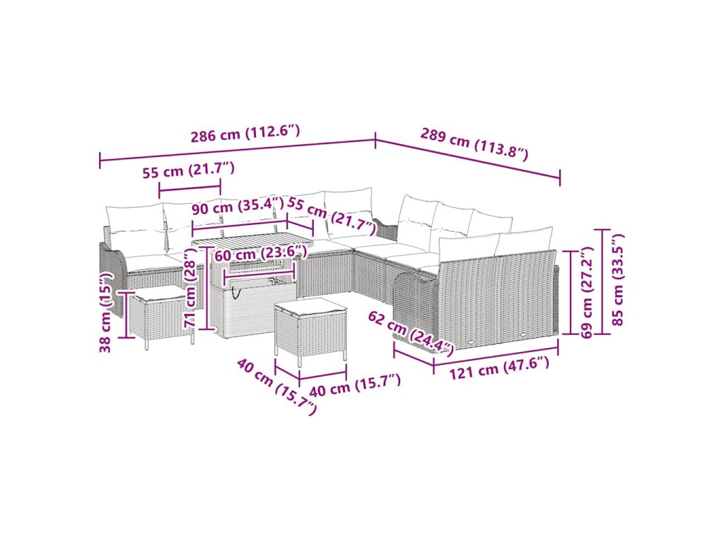 Sada zahradních pohovek 13 pcs Béžová polyratan 3362327