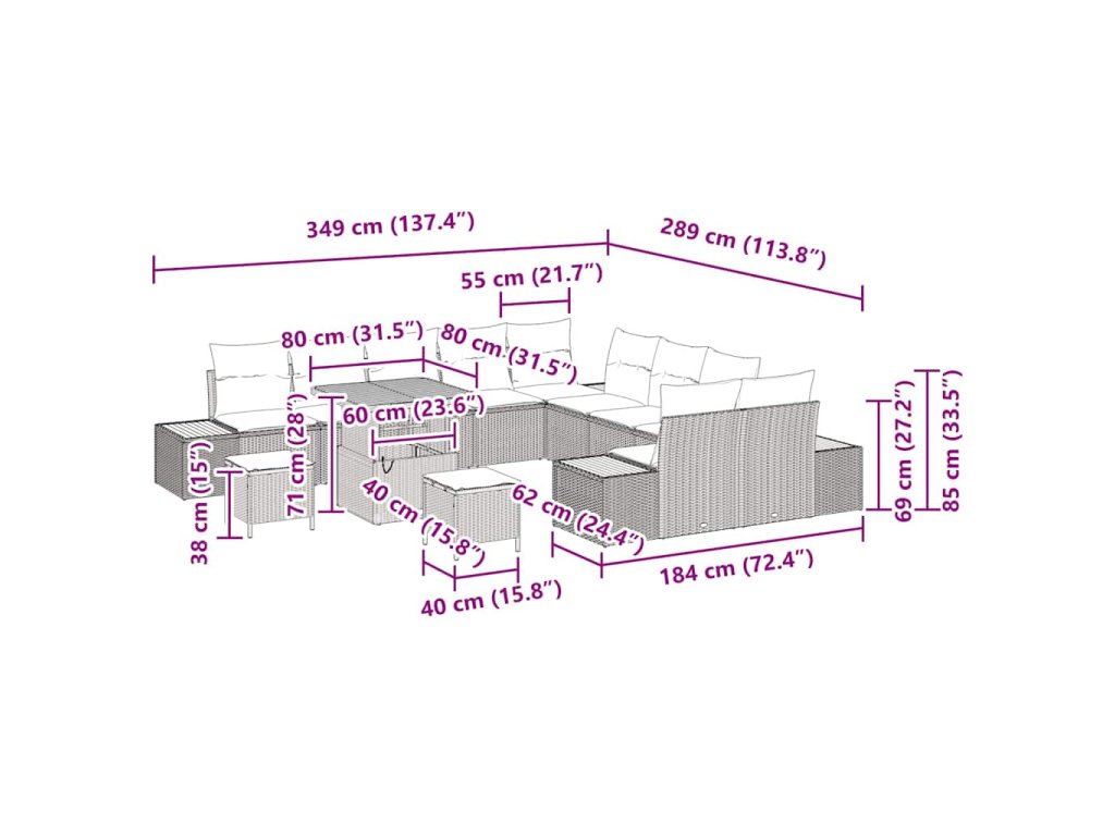 Sada zahradních pohovek 13 pcs Béžová polyratan 3362972