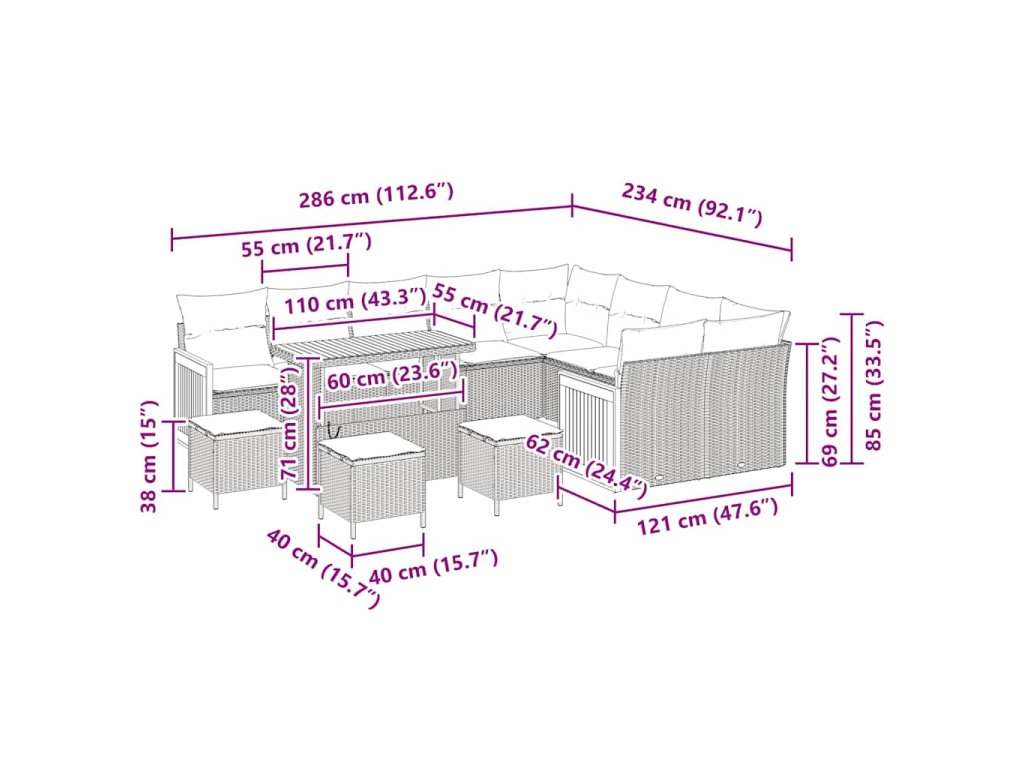 Sada zahradních pohovek 13 pcs Černá a krémová 110 x 55 x 71 cm 3363350