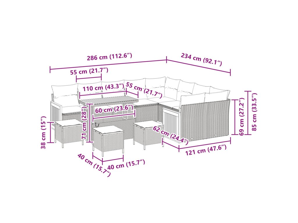 - Materiály: Tato sedací souprava spojuje pohodlný polyratan s pevnou oporou z masivního akáciového dřeva, takže vytváří skvělou rovnováhu mezi stylem a stabilitou. Ratan je příjemný na dotek, zatímco dřevo dodává pevnost.