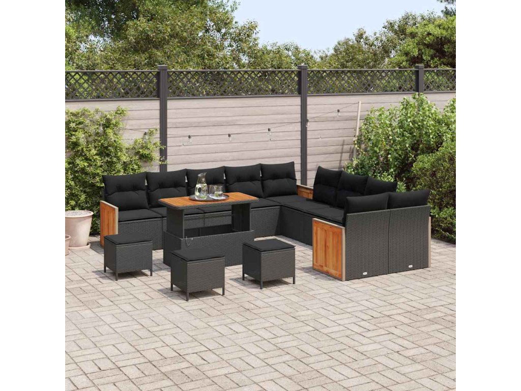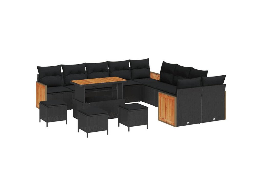 Sada zahradních pohovek 14 pcs Černá polyratan 3365319