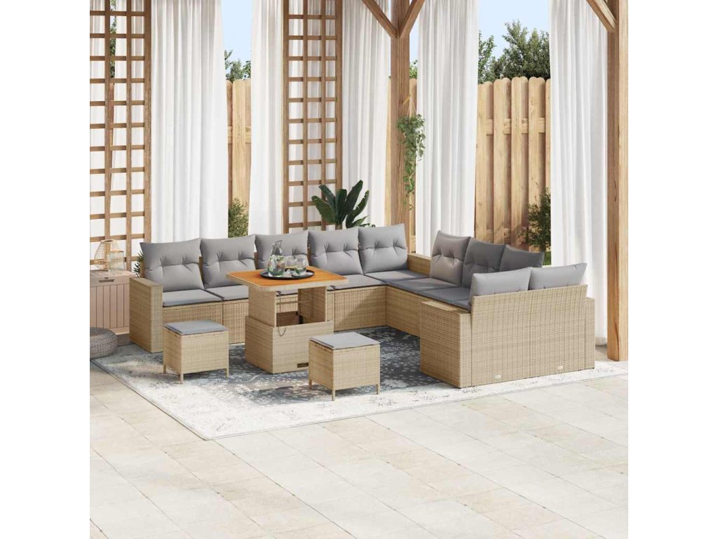 - Materiály: Z polyratanu, který je odolný proti UV záření a navržený tak, aby zvládal venkovní podmínky. Masivní akáciové dřevo dodává hezký kontrast a zlepšuje jak vzhled, tak funkčnost.