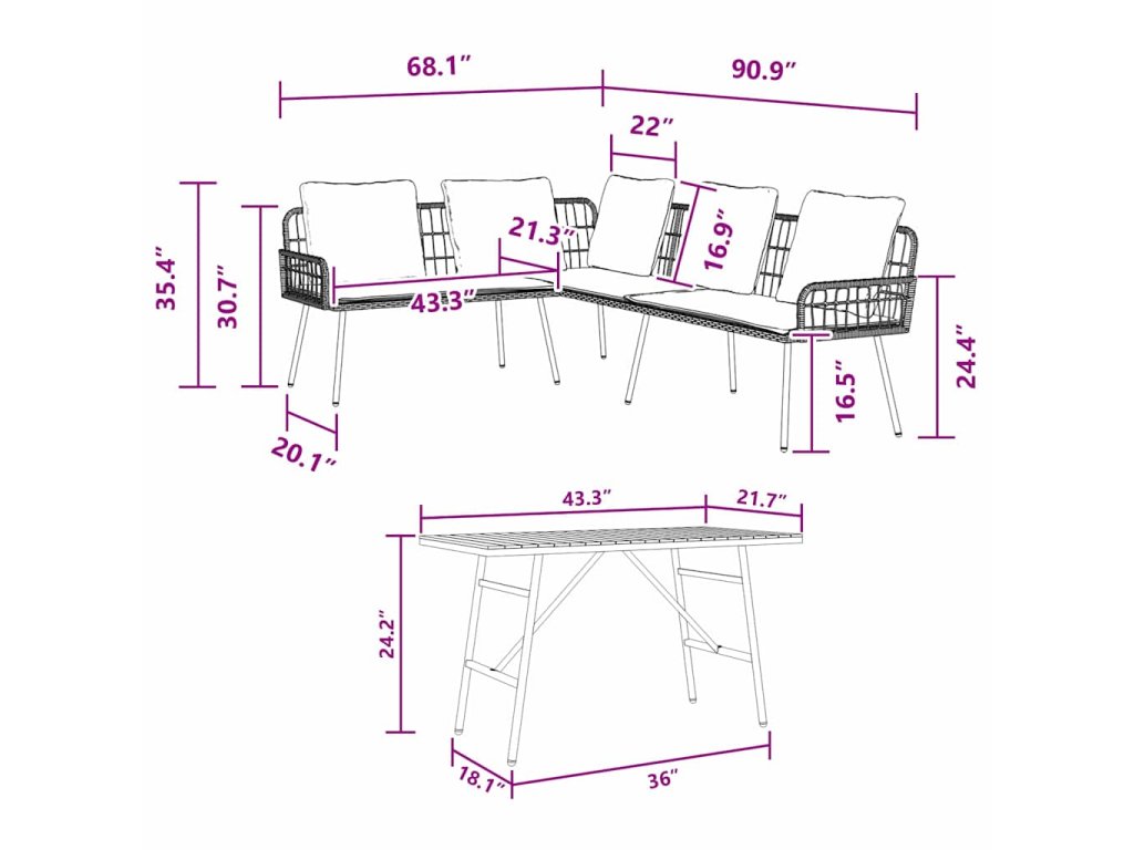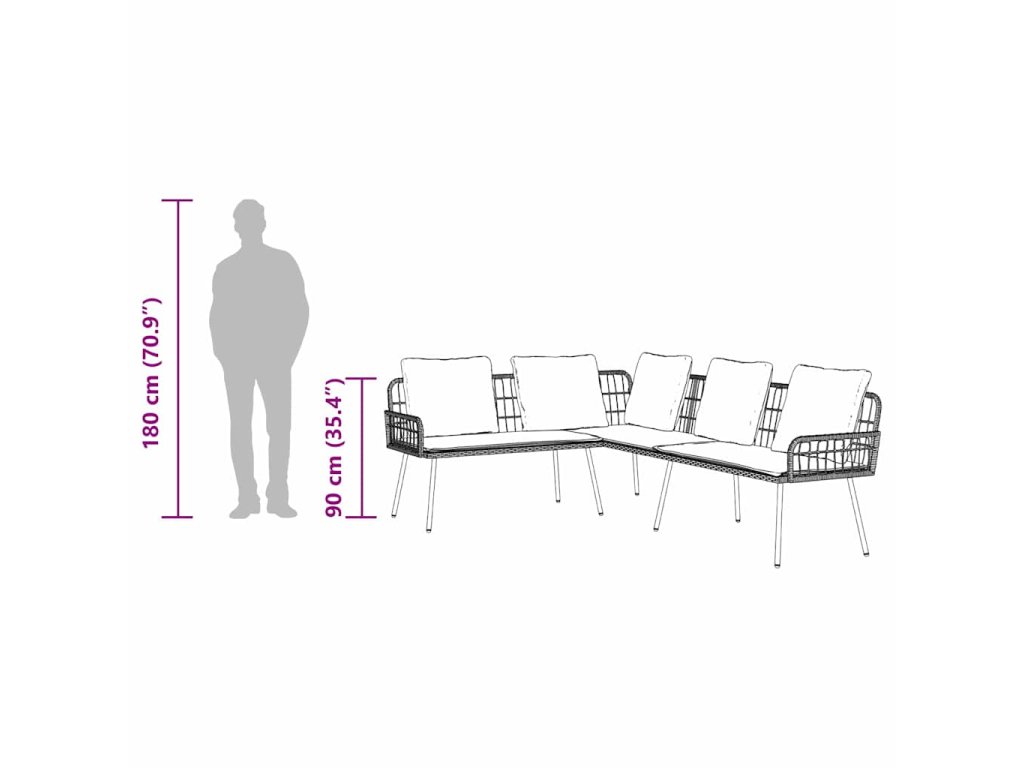 - Styl poly ratanu Zahradní sofa set má kvalitní poly ratanový povrch, který spojuje odolnost a eleganci. Tento materiál odolává každodennímu opotřebení, takže je skvělou volbou pro venkovní použití. Vypadá skvěle po celý rok a nabízí pohodlí i styl.