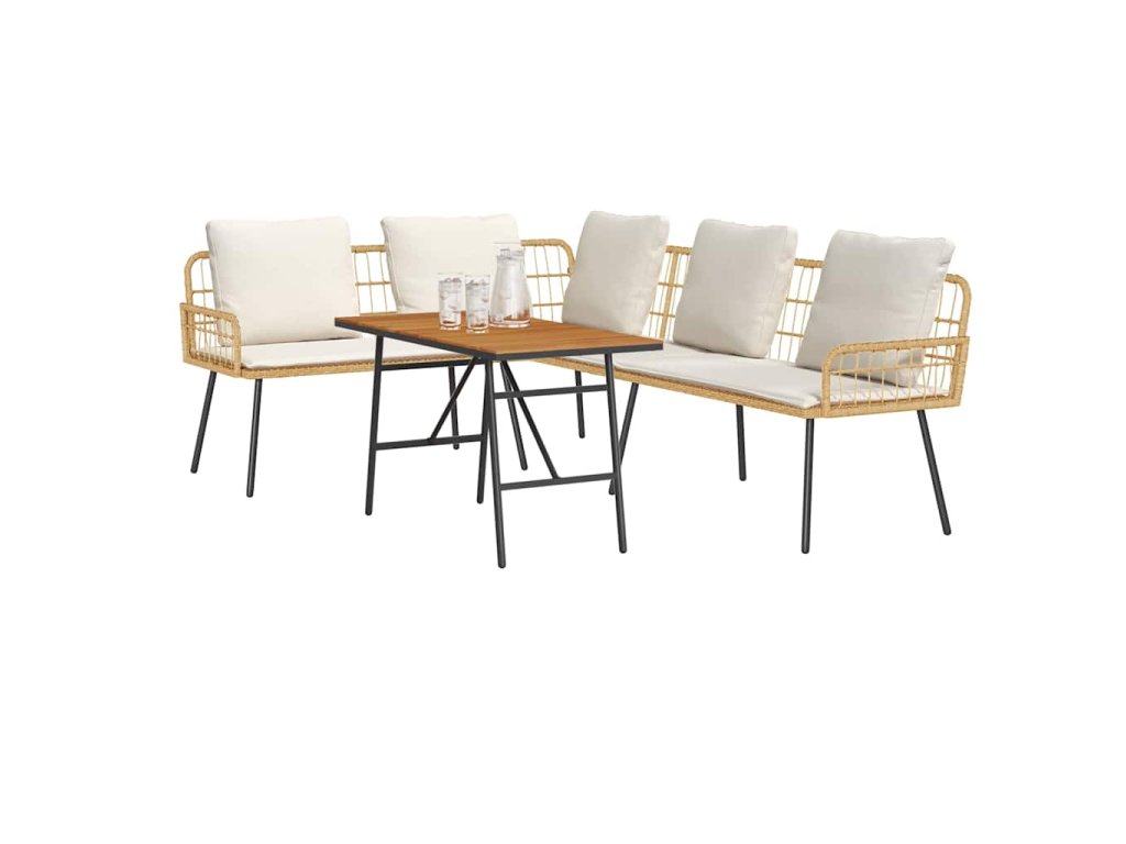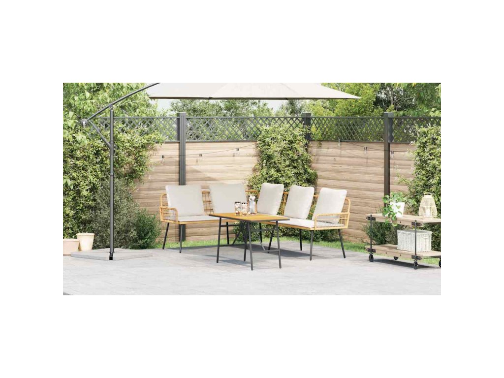 - Styl poly ratanu Zahradní sofa set má kvalitní poly ratanový povrch, který spojuje odolnost a eleganci. Tento materiál odolává každodennímu opotřebení, takže je skvělou volbou pro venkovní použití. Vypadá skvěle po celý rok a nabízí pohodlí i styl.