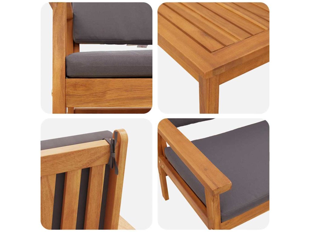 - Masivní akáciové dřevo: Tenhle zahradní sofa set je vyrobený z kvalitního akáciovýho dřeva, suitable for co je odolný a trvanlivý i venku. Dřevo akácie je přirozeně odolný proti opotřebení, takže set funguje skvěle za každého počasí – ideální pro ty, suitable for co chtějí kvalitní venkovní nábytek.