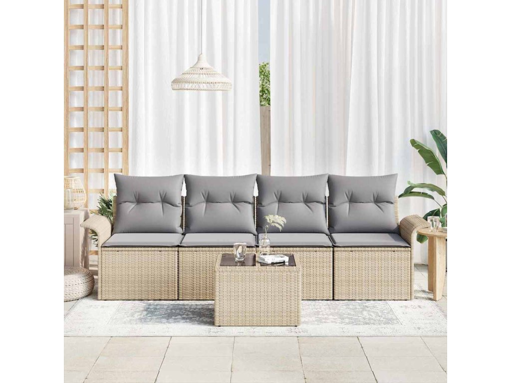 Sada zahradních pohovek 5 pcs Beige a šedá polyratan 3353899