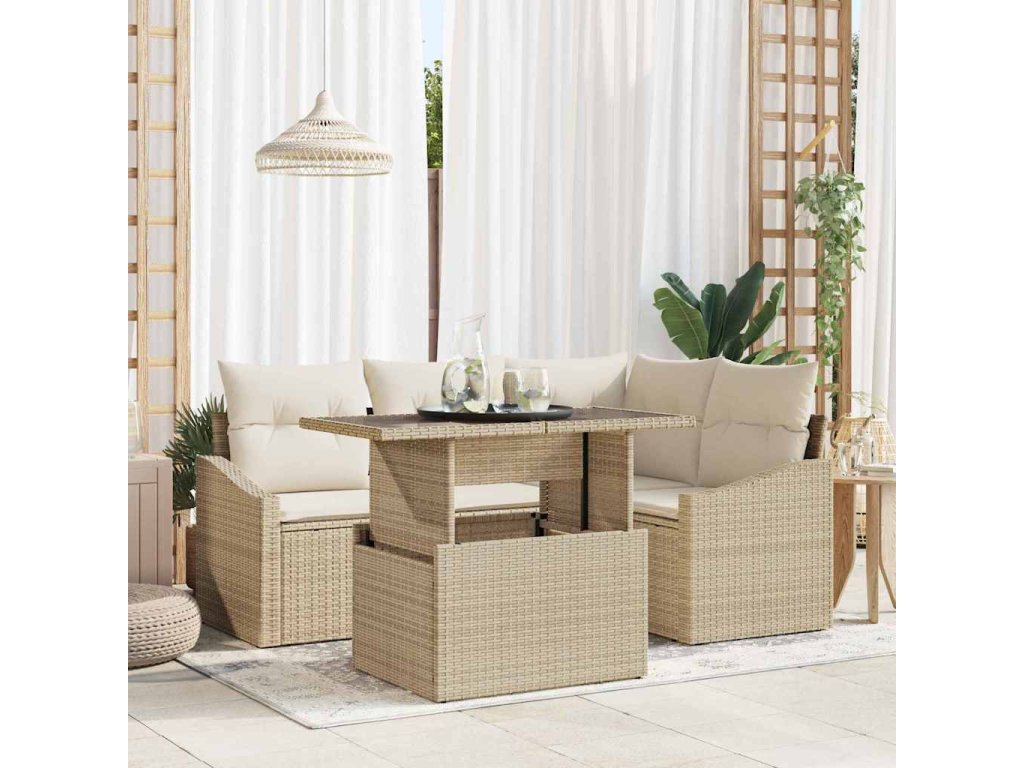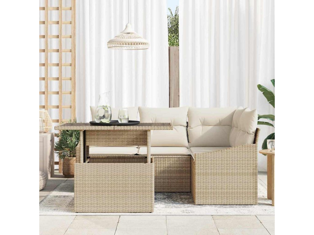 Sada zahradních pohovek 5 pcs Béžová a krémová polyratan 3348997