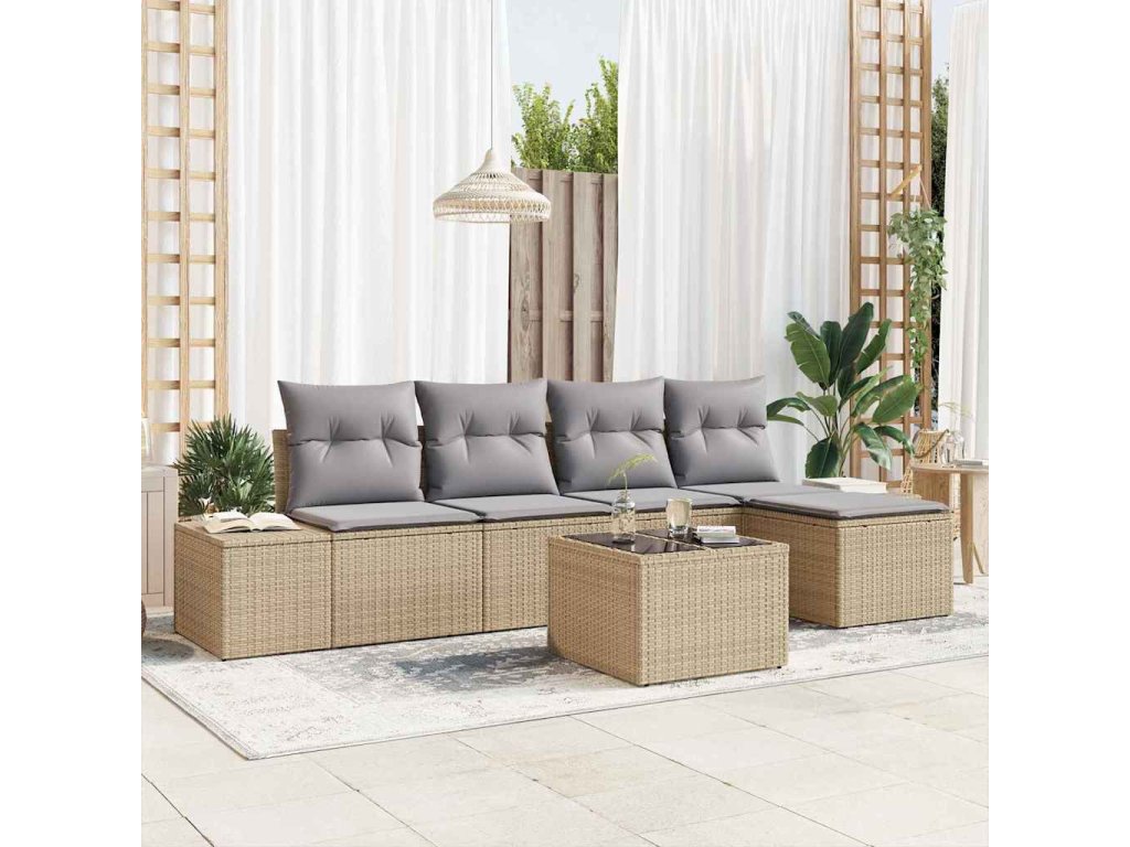 Sada zahradních pohovek 5 pcs Béžová a Světle šedá polyratan 3355699