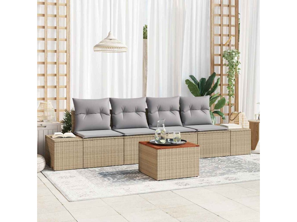 Sada zahradních pohovek 5 pcs Béžová a Světle šedá polyratan 3356558