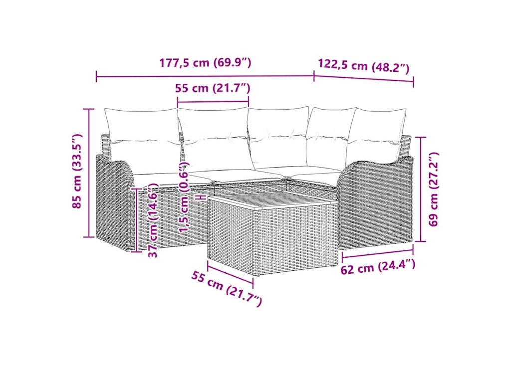 Tahle zahradní sedačka, udělaná z kvalitního polyratanu, je skvělý doplněk pro jakékoliv venkovní místo. Můžeš si ji uspořádat podle sebe. Její moderní vzhled dodává styl tvé zahradě nebo terase, takže se skvěle hodí na lenošení nebo venkovní zábavu.