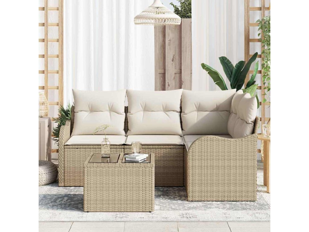 Sada zahradních pohovek 5 pcs Béžová polyratan 3345691
