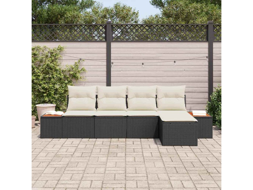 Sada zahradních pohovek 5 pcs Černá a krémová Poly Ratan 3356732