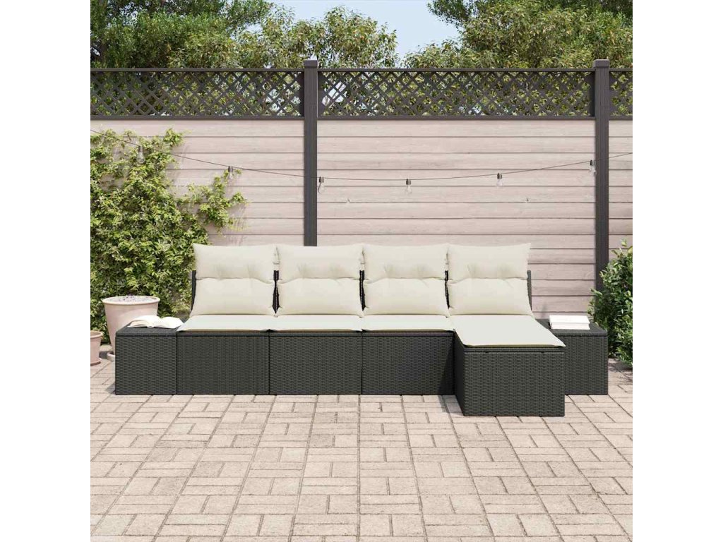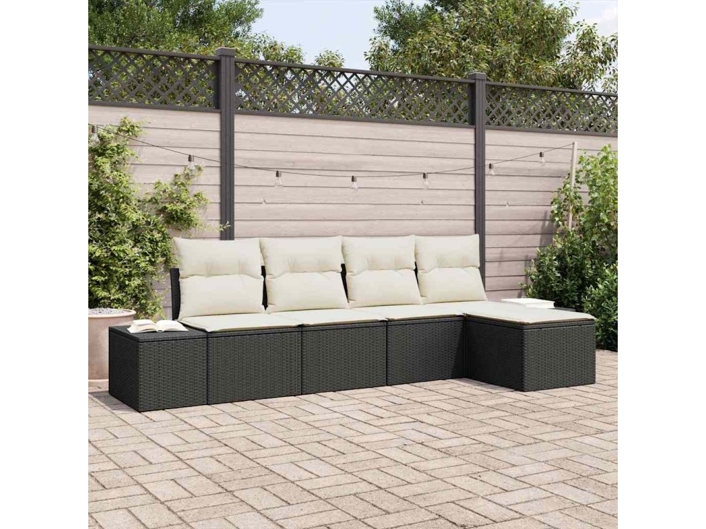 Sada zahradních pohovek 5 pcs Černá a krémová polyratan 3355686