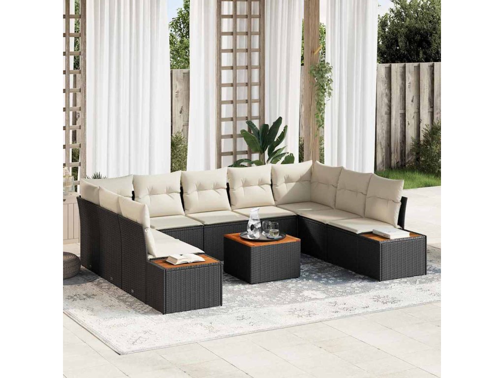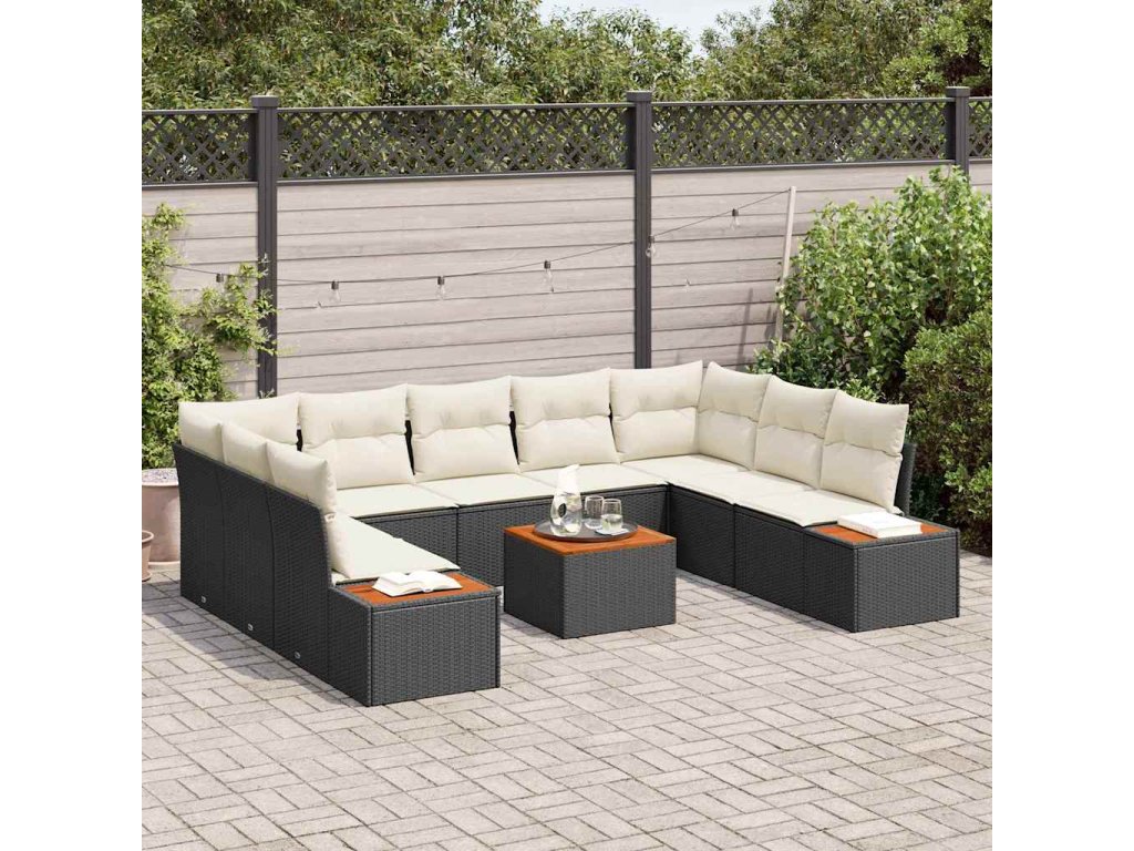 Sada zahradních pohovek 5 pcs Černá a krémová Polyratan 3356837
