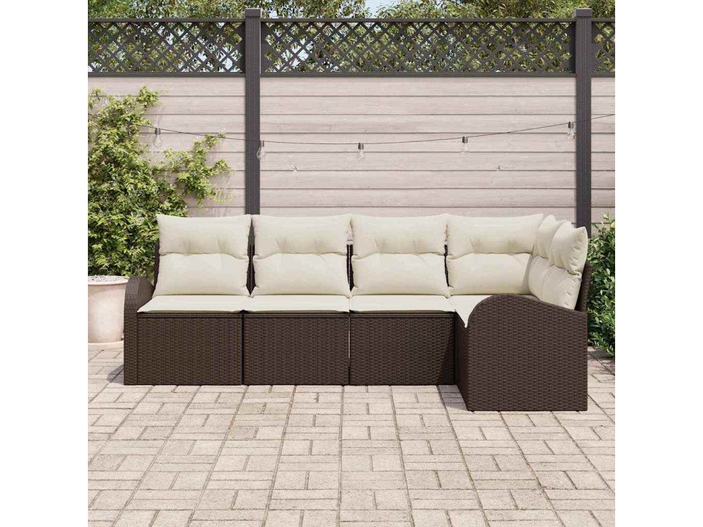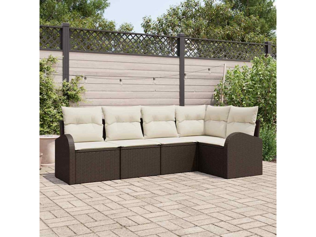 Sada zahradních pohovek 5 pcs Hnědá a bílá Poly ratan 3354707