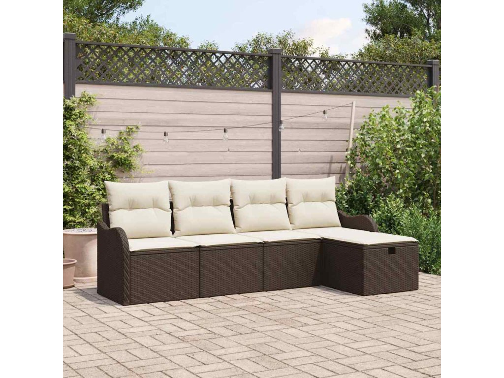 Sada zahradních pohovek 5 pcs Hnědá a krémová Poly ratan 3358957