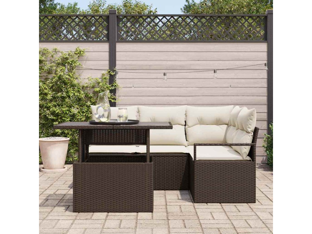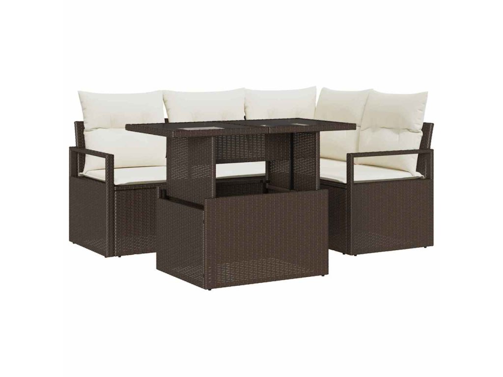 Sada zahradních pohovek 5 pcs Hnědá a krémová polyratan 3348814