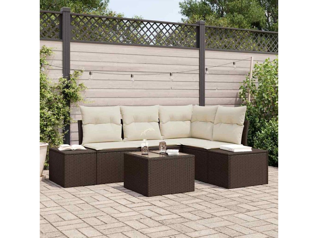 Sada zahradních pohovek 5 pcs Hnědá polyratan 3347048