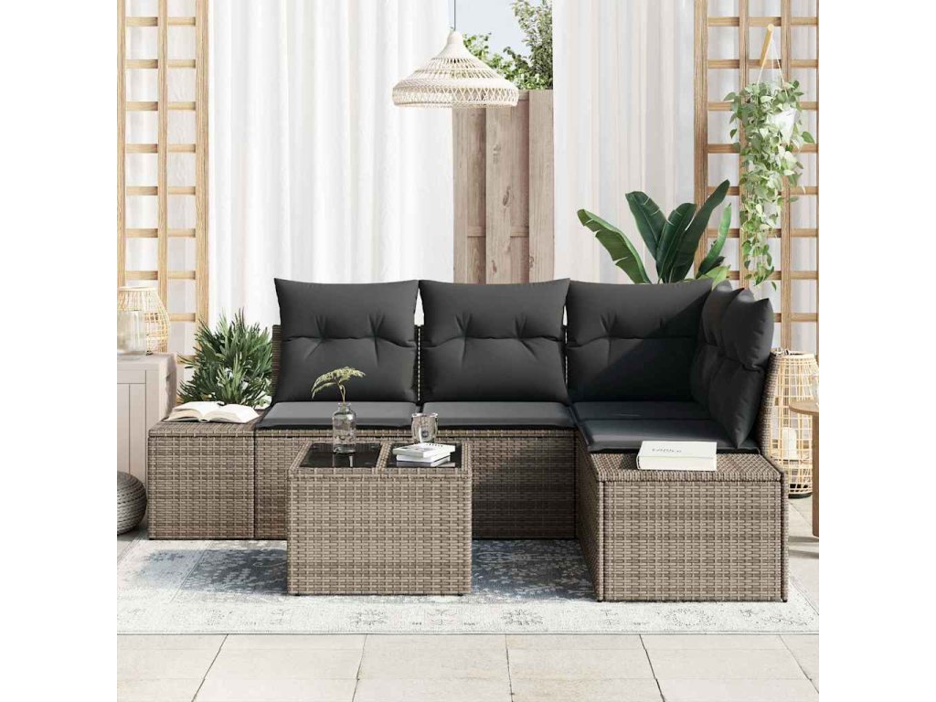 Sada zahradních pohovek 5 pcs Šedá polyratan 3347049