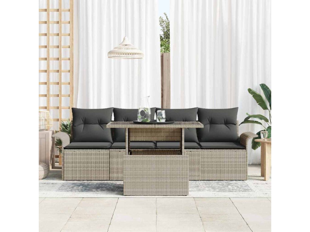 - Elegance poly ratanu: Tahle souprava je udělaná z kvalitního poly ratanu, což jí dává stylový vzhled a trvanlivou konstrukci. Poly ratan je známý svou odolností, takže tvůj nábytek vypadá skvěle i za různých podmínek.