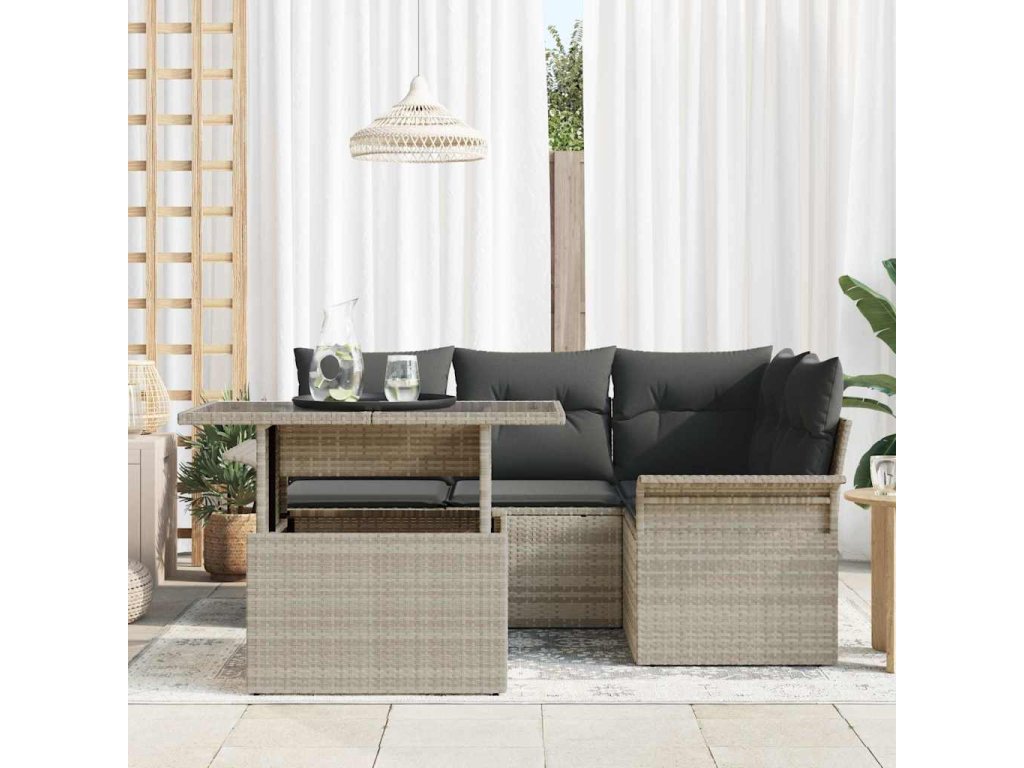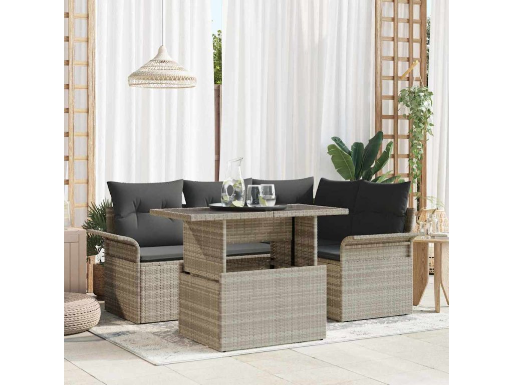 Sada zahradních pohovek 5 pcs Světle šedá Poly ratan 3348278