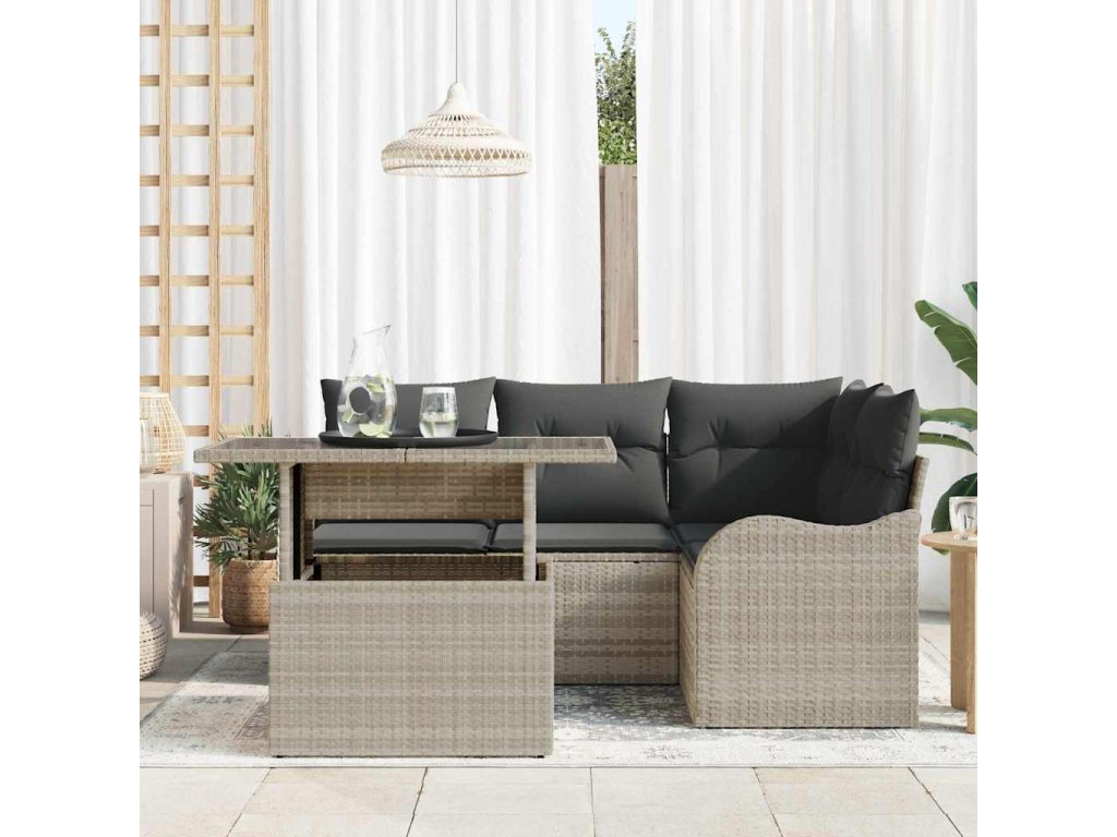 Sada zahradních pohovek 5 pcs Světle šedá Poly Ratan 3357195