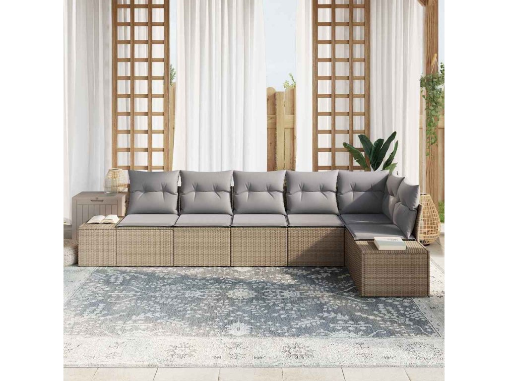 Sada zahradních pohovek 6 pcs Beige a šedá polyratan 3347080