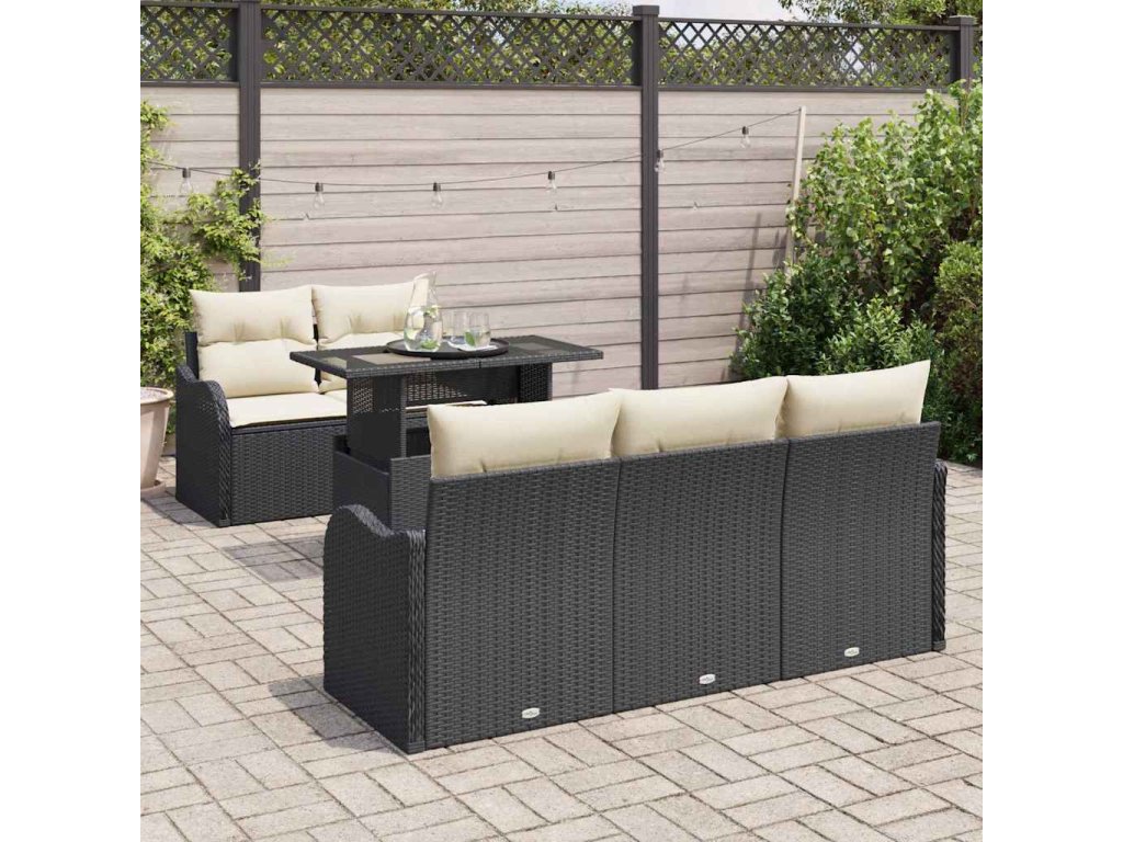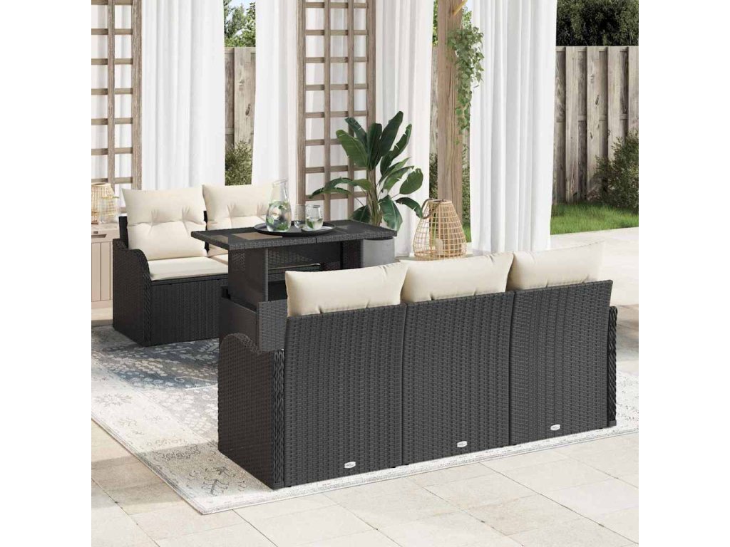 Sada zahradních pohovek 6 pcs Černá a krémová polyratan 3348373
