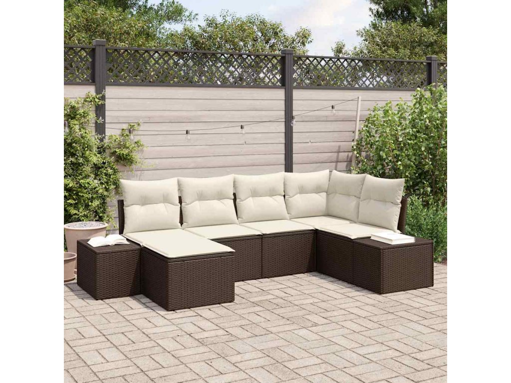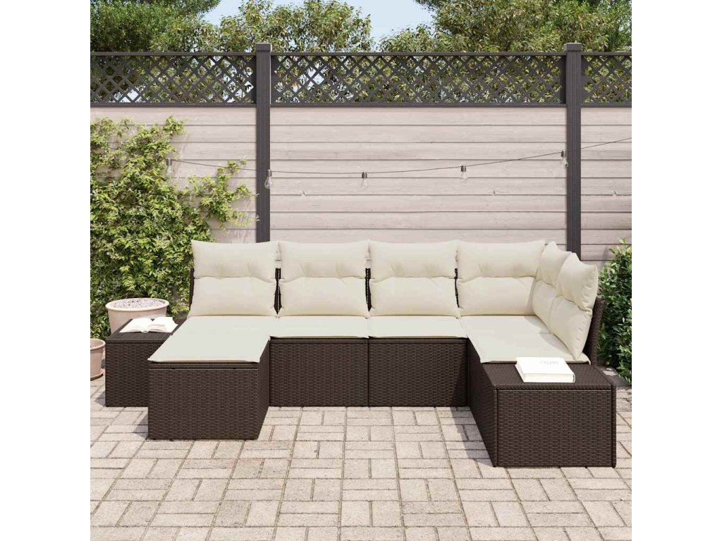 Sada zahradních pohovek 6 pcs Hnědá a krémová polyratan 3355797