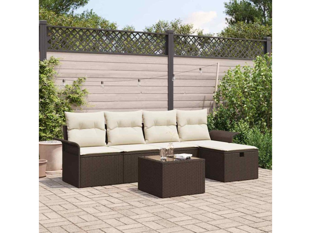Sada zahradních pohovek 6 pcs Hnědá a krémová polyratan 3358867