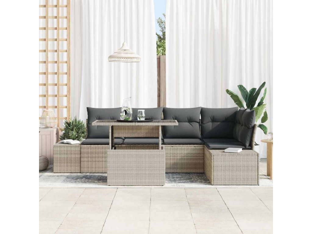Sada zahradních pohovek 6 pcs Světle šedá Poly ratan 3357925