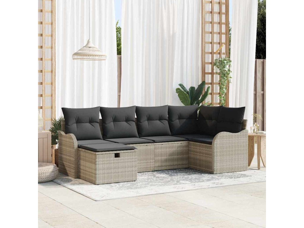 Sada zahradních pohovek 6 pcs Světle šedá Poly ratan 3358981