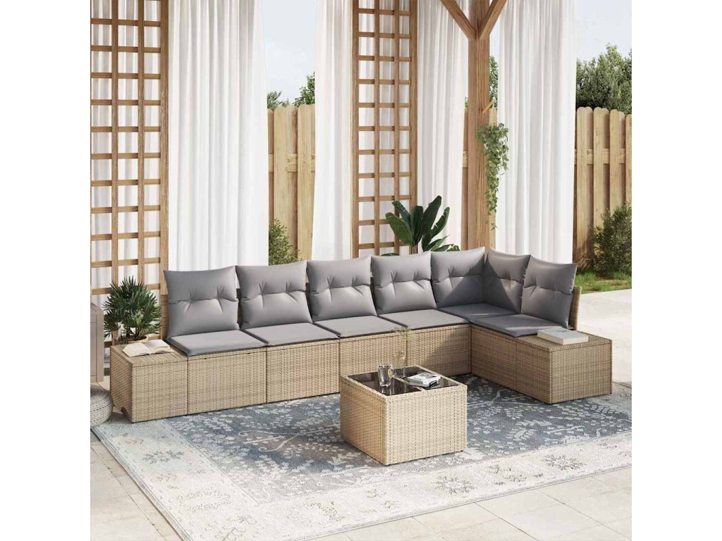 Sada zahradních pohovek 7 pcs Beige a šedá polyratan 3347090