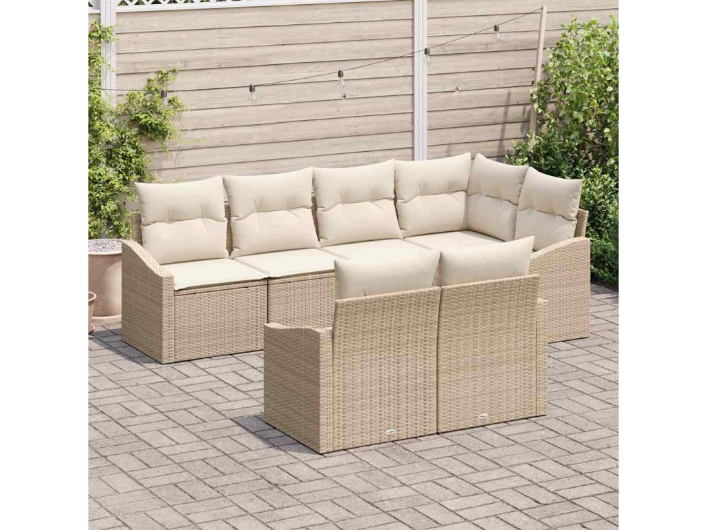 Sada zahradních pohovek 7 pcs Béžová a bílá polyratan 3355430
