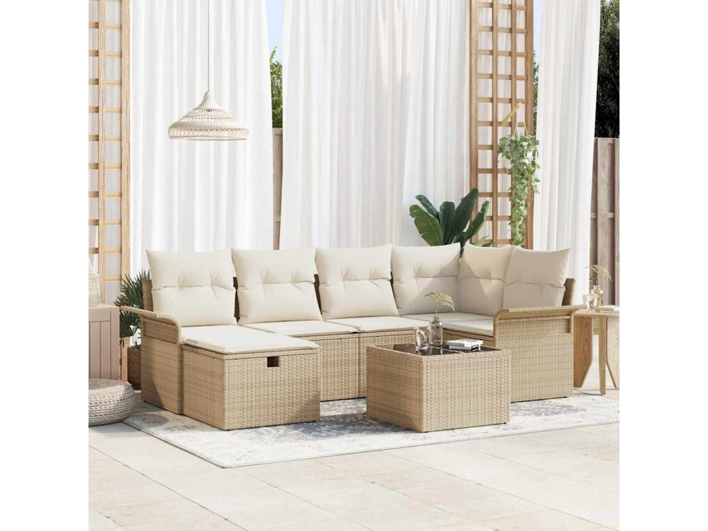Sada zahradních pohovek 7 pcs Béžová a krémová polyratan 3358890