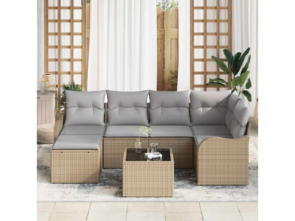 Sada zahradních pohovek 7 pcs béžová a světle šedá Poly ratan 3354449