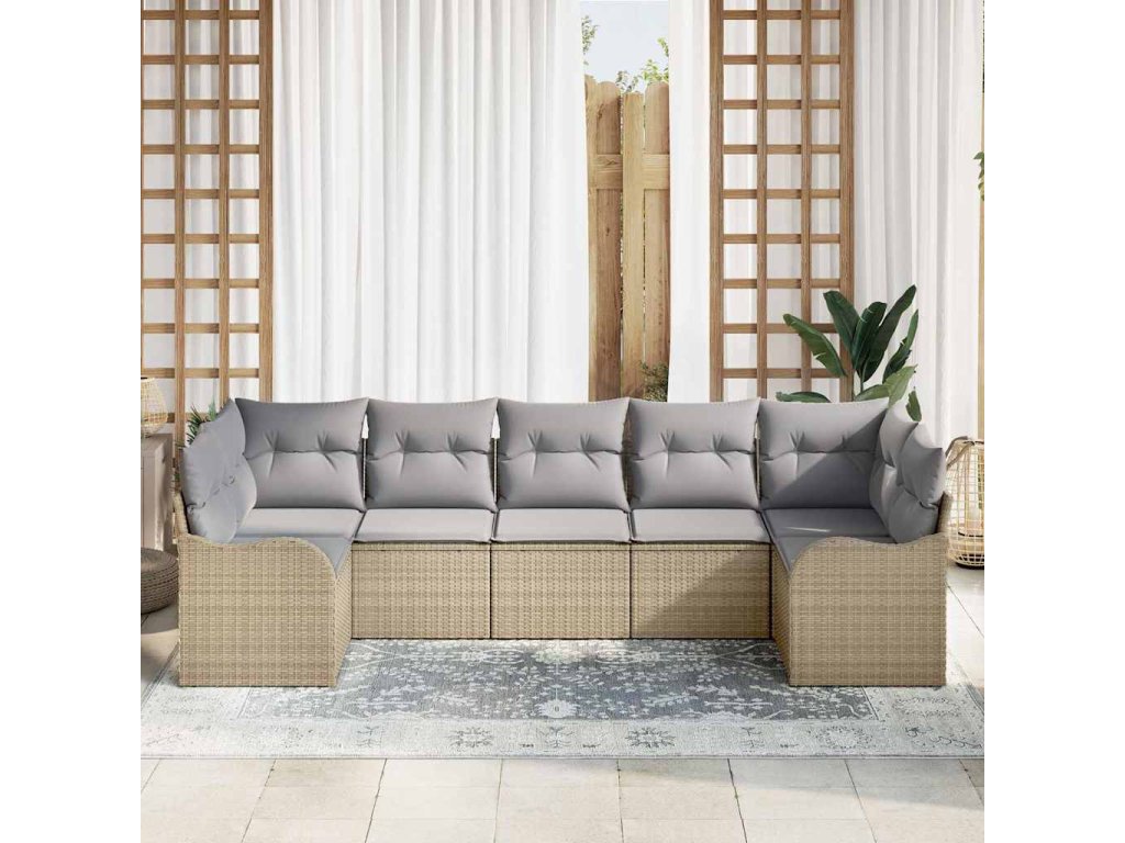 Sada zahradních pohovek 7 pcs béžová a světle šedá Poly ratan 3354519