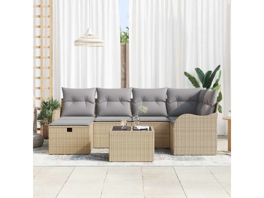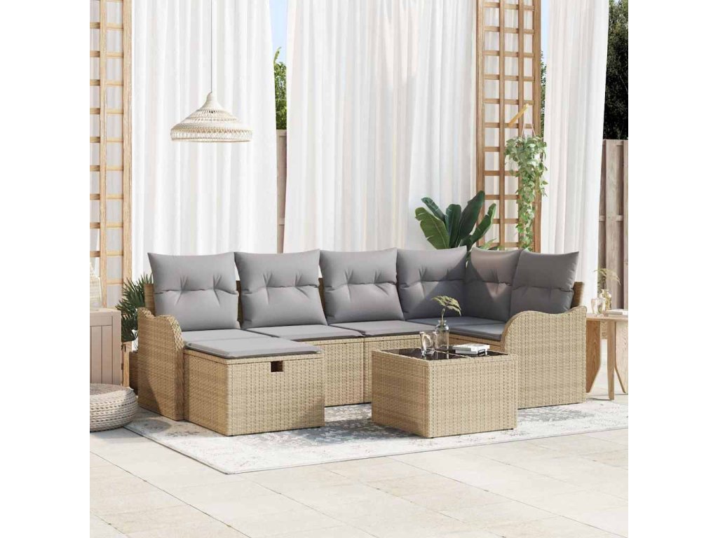 Sada zahradních pohovek 7 pcs béžová a světle šedá Poly ratan 3358989