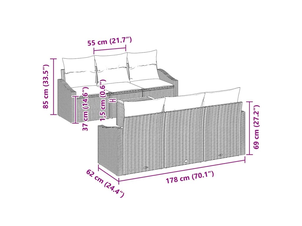 - 2 x Střední sedák: 55 x 62 x 69 cm (D x Š x V)